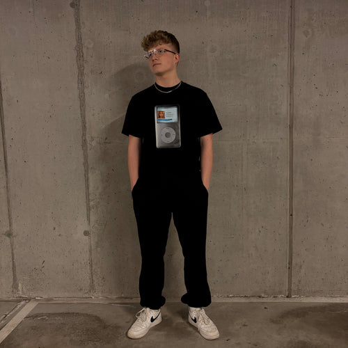 Minimalist black T-shirt featuring a retro music player graphic. Designed with an oversized fit for a relaxed, modern silhouette. Made from premium 220 GSM, 100% cotton, offering a heavyweight feel while staying comfortable for everyday wear. Designed and produced in Poland with attention to quality and detail. A perfect blend of streetwear style and minimal aesthetic.